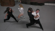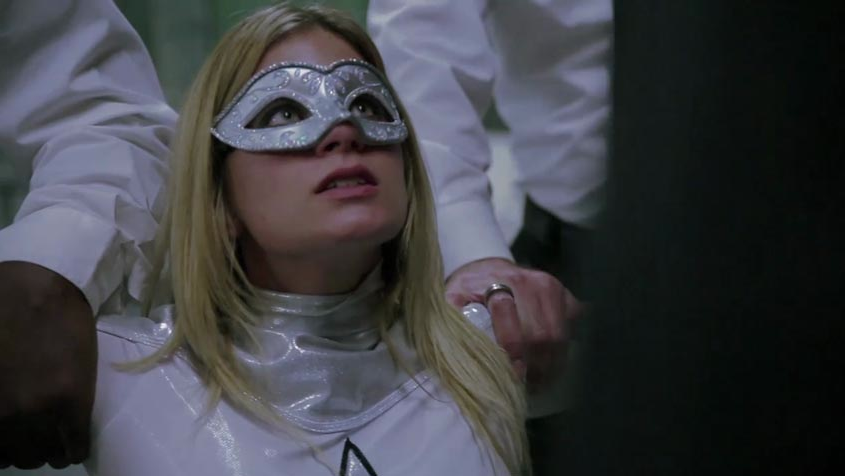 Falcone sends Agents out to capture Allura and after she is held down and beaten, she breaks free and they vanish away. Next, Nightshadow enters and attacks Allura by command of Falcone where she chokes out Allura with her whip. Falcone then "turns off" Nightshadow, knocking her to the floor unconscious.
