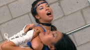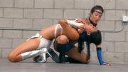 ROUND 1: Thorne chokes Celestia out with a Dragon Sleeper hold.