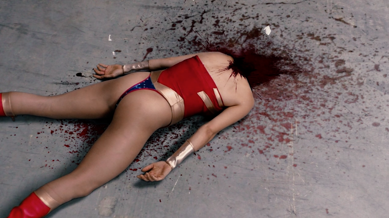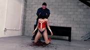ROUND 3: Granite breaks Skyhawk's neck with an upside-down bear hug into his knee. He then props her up and smashes her head which explodes. Fatalilty