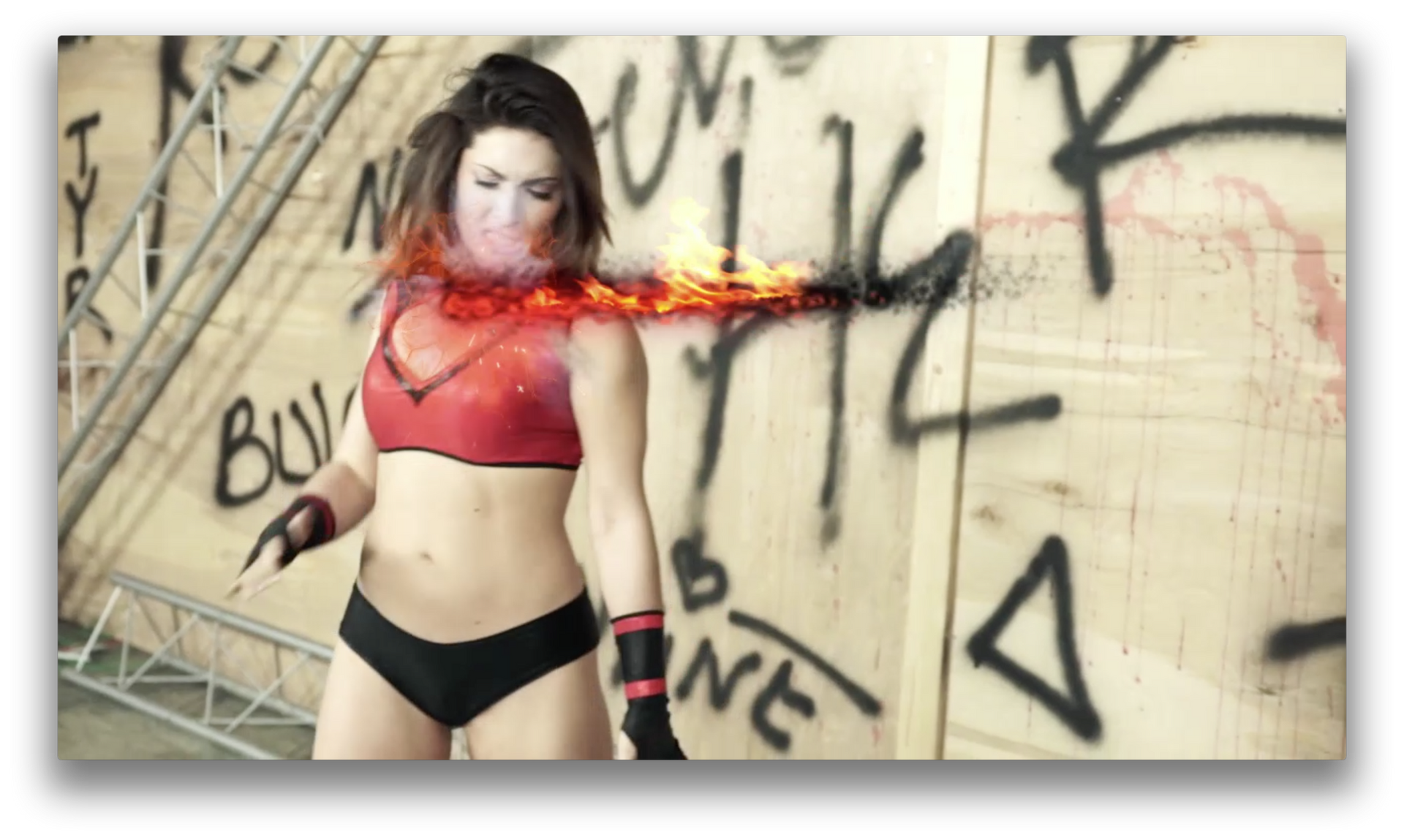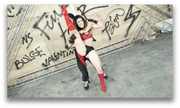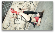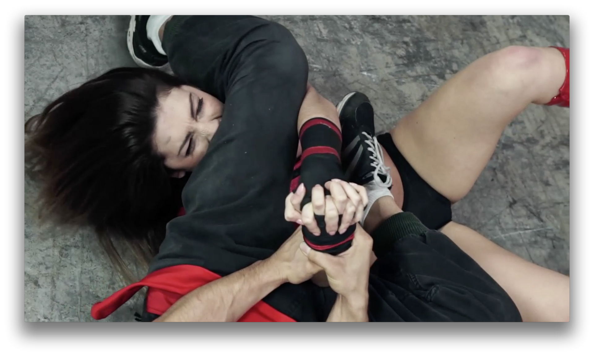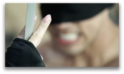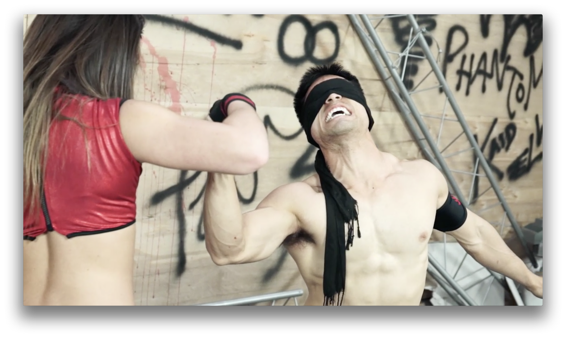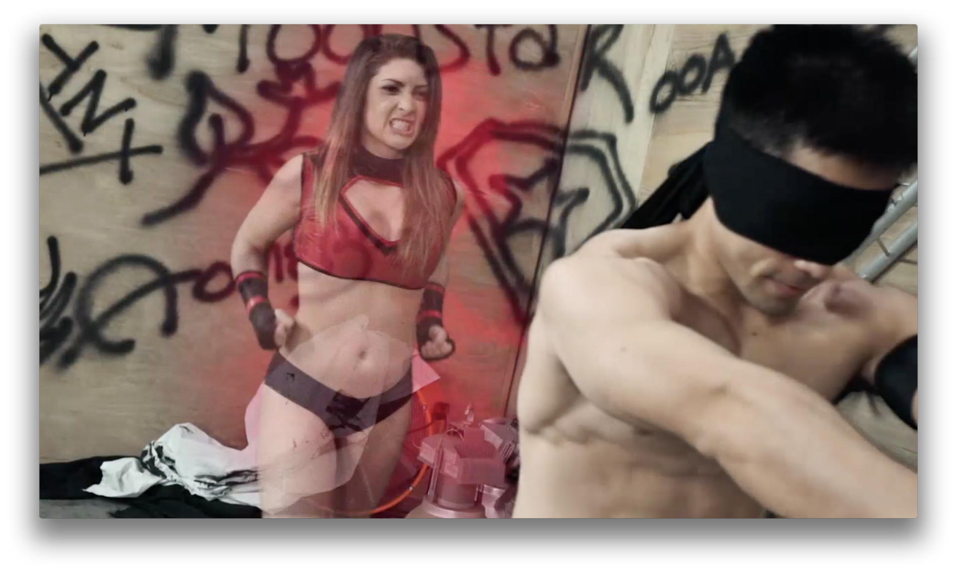 ROUND 3: Red Falcon knocks out Trinity with a kick to the face. He then wakes her up to beat her down some more and then throws a ninja star into her forehead -- Fatality