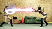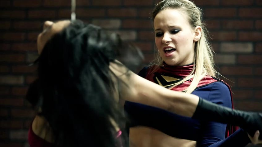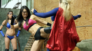 Celestia being out of control, takes on Thorne & Vega and holds her own until Thorne holds her and Vega begins her beat down. They then hog tie her after chloroforming her and place her on a table. They wake her up, only to chloroform her again.