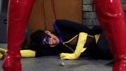 Amethyst takes a total beating from Moonstar as she refuses to give up. Once a mysterious rock shows to have an effect on Moonstar, Amethyst gets the upper hand and knocks her out with an upper cut. Moonstar then wake up during a phone conversation and flies off, fleeing the scene.